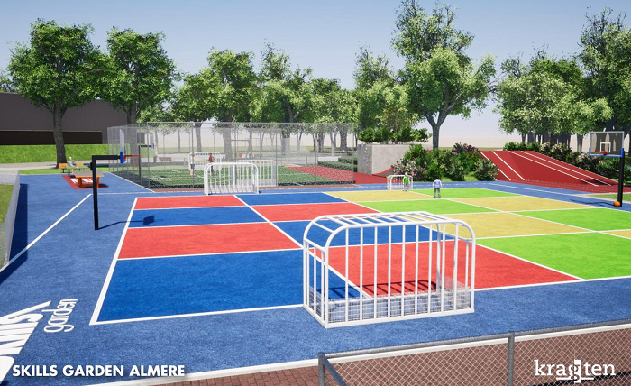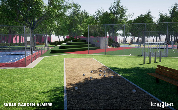 De twee visies en de bewonersinput resulteerden in een ontwerp van Kragten/ASM voor een buitenruimte, de Skills Garden, die in het voorjaar van 2019 wordt gerealiseerd. Postuma: “Het moet een buitenruimte worden die door de variatie in het aanbod alle inwoners van Almere stimuleert om te bewegen.Dus niet alleen jeugd, maar ook senioren en andere doelgroepen. Daarbij komen onbewust alle grondvormen van bewegenaan de orde, zoals klimmen, klauteren, balanceren en lopen.” Het ontwerp werd in juli 2018 aan de bewoners voorgelegd, die er vrijwel volledig mee instemden.