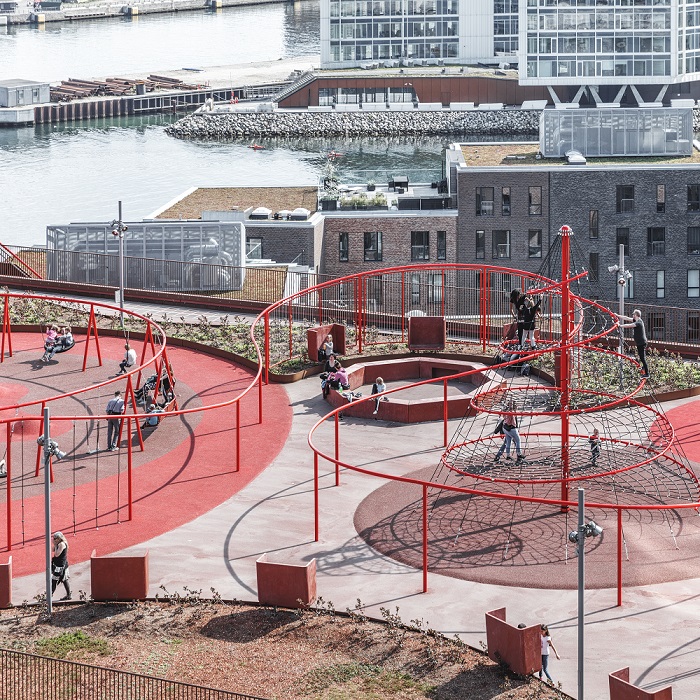 Het klapstuk van de parkeergarage is de speeltuin op het dak. Op het dak is een glooiend landschap gecreeerd, met schommels, kooien, klimrekken, sportattributen en trampolines. Verder zijn er zitgedeeltes gecreëerd waar mensen uit de wijk op adem kunnen komen of kunnen genieten van het uitzicht over Kopenhagen. De nieuwe parkeergarage is een sociale ontmoetingsplaats en een uitdagend onderdeel voor de lokale omgeving. En, niet onbelangrijk, mensen kunnen er nog altijd hun auto's parkeren.