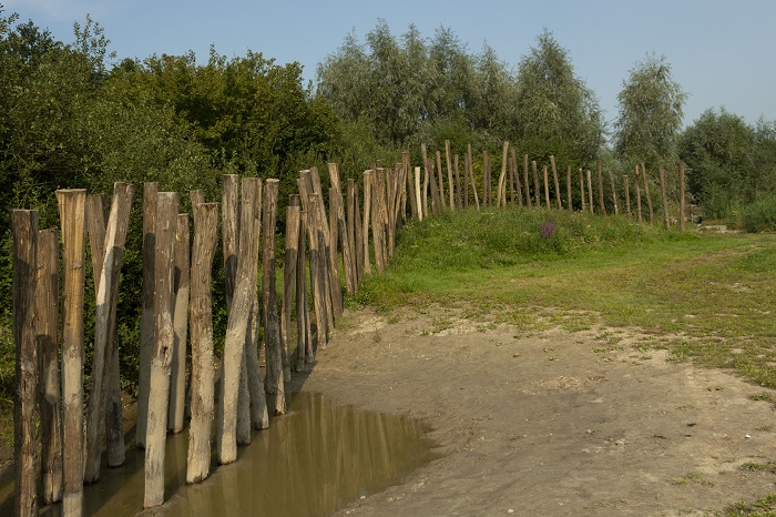 Om de kinderen deze dag verder lekker in en rond het water te laten spelen, ben ik zelf op ontdekkingstocht gegaan door het Belevenissenbos. Als eerste richting het klimparcours, waar ik midden in het bos de vele objecten en hindernissen zie waar kinderen over spraken. Niet één parcours, maar een hele verzameling door het bos. Soms wel achter elkaar als route te combineren, maar veel vaker heb je zelf de keus hoe je eigen route verder gaat. Overal de natuurlijke ondergrond van het bos en in de polder is dat regelmatig kleiachtig, bedekt met een toplaag van blad.