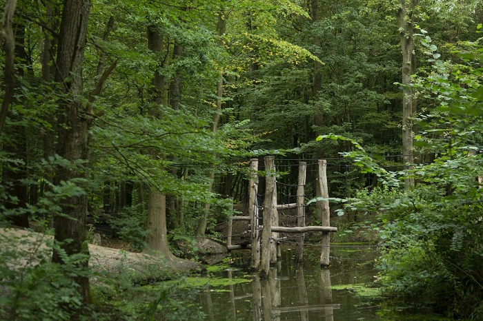 Door het Belevenissenbos zijn twee routes uitgezet, met gele en oranje markering, die je door groot deel van de bossen leidt. Het is de route voor volwassenen die geen uitdaging aan willen gaan en veilig een gemarkeerde route volgen. Mijn persoonlijke mening, maar niet iets waarvoor ik naar het Belevenissenbos ga. Ik laat mij leiden door het kind in mij, neem objecten die soms lastig zijn met een schijfblok in je hand en grote fotocamera om je nek. Ik sluip door paadjes nieuwsgierig afvragend waar het naar toe leidt. Regelmatig leidde dit tot helemaal niets, hoogstens tot een volgend pad waar de link- en rechtsaf kan. Soms ‘aangetrokken’ door een uitdagende oversteek over het water, kom ik op de meest verrassende plekken uit.