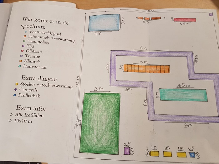 Leerlingen kregen een extra opdracht mee. Daar waar mogelijk moesten ze in hun ontwerp inspelen op technologische ontwikkelingen. En van belang was dat de speeltuin geschikt zou zijn voor verschillende leeftijdscategorieën, voor de jongste, maar ook voor wat oudere kinderen (12+).