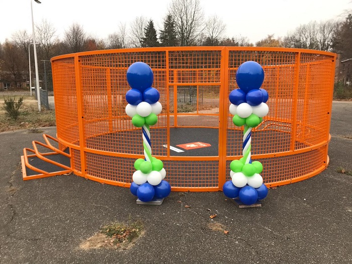 Het project bij De Hoenderloo Groep – mede mogelijk gemaakt door Bouwcenter Nederland – zorgt ervoor dat vooral de jonge kinderen in de instelling meer speelmogelijkheden hebben. Gekozen is hier voor een twee meter hoge kooi. Deze heeft veel uitstraling en geeft spelers het gevoel van ‘wow, ik sta in een echte wedstrijdkooi’. Extra voordeel van de hoge kooi is dat deze mogelijke agressie van buitenaf tegenhoudt.