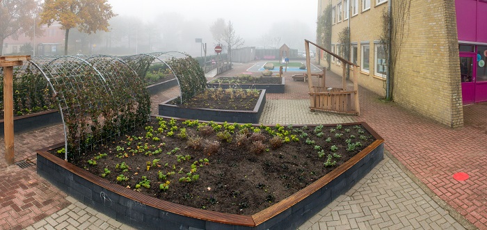 Wat Hoek opviel in de uitvoering was de grote binding van uitvoerende partijen met de doelgroep. “Nergens zag je dat klakkeloos gewerkt werd, er was sprake van een grote betrokkenheid. Bij alle uitvoerende partijen." Een van hen was Romke Notenbomer, Notenbomer Multiservices, voor de bestrating en beplanting. Romke speelde een grote rol bij de definitieve vormgeving en mooie uitvoering. Hij heeft als cadeau ook aangeboden om het komende jaar zorg te dragen voor onderhoud van het groen. “Die betrokkenheid heeft een prachtig inclusief belevingsplein opgeleverd,” vindt ook Ilse van der Put. “Op het oude schoolplein zag je kinderen bij het hek staan om te zwaaien naar passerende bussen. Dat was het enige vertier. Nu zijn er overal activiteiten. En het bijzondere is ook leerkrachten vinden het leuk. Ze staan nu graag buiten en hebben plezier, met de kinderen.”