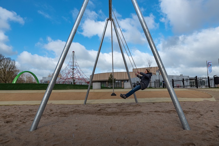 Vorig jaar is in Katwijk naast het nieuwgebouwde zwembadAquamar een nieuwe centrale speeltuin aangelegd, een speellandschap ontworpen door landschapsarchitect Frans Boots, met hoogteverschillen en diverse ondergronden zoals zand, gras, rubber en beton. Er is genoeg te beleven voor veel leeftijdsgroepen en er is ruimte voor vrij spel. Er zijn diverse speeltoestellengeïnstalleerd, gekozen door kinderen van een nabijgelegen school: een klimnet, een reuzenschommel en de Sonaboog met digitale spellen. Er zijn ook glijgoten en trampolines geplaatst. Kinderen van 8-13 jaar komen vooral af op de reuzenschommel en de combinatie van trampolines. Deze trampolines liggen in een rubberenvloer, zodat dit nog meer gebruiksmogelijkheden biedt.Eén trampoline is geschikt voor rolstoelers.