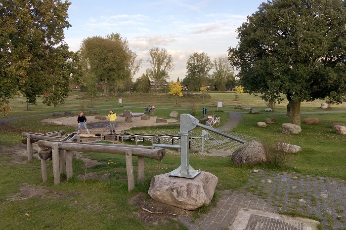 Door de centrale ligging van het park kunnen kinderen gemakkelijk vanaf huis in het park komen, zonder al te grote wegen over te steken. In het park weten zij snel hun weg te vinden naar de verschillende speelplekken. En hierin laten zij zich niet alleen leiden door bestaande paden door het park. Zowel met de fiets als lopend weten zij gemakkelijk de kortste weg te vinden; gewoon over het gras. In dit artikel staat de waterspeelplaats centraal, maar de kinderen hebben daar niet altijd een boodschap aan. Direct naast de waterspeelplaats ligt de crossbaan. Tussen het waterspel door vliegen de kinderen geregeld even uit.