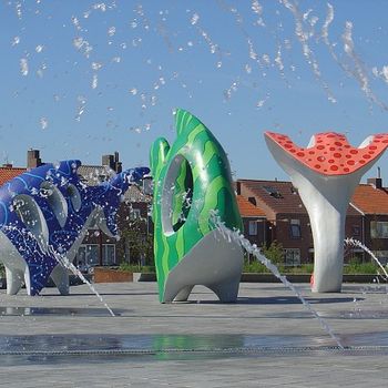 De verrassend grote en kleurrijke kunstobjecten van kunstenaar Albert Kramer in de vormen van vissen completeren het geheel. Het granieten waterplein met de dertig meter lange roosters en de golvende granieten bank is door Gebroeders Voets gematerialiseerd en uitgewerkt. De houten verlichtingsmasten, de verschillende verlichtingsarmaturen en de lijnverlichting zijn met Industrielicht verder uitgewerkt. De projectleiding was in handen van InfraDem in opdracht van de gemeente.