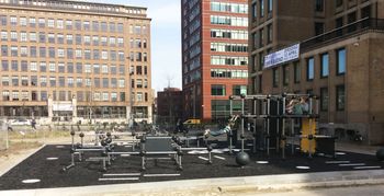 Tijdelijk freerunpark bij Hogeschool van Amsterdam